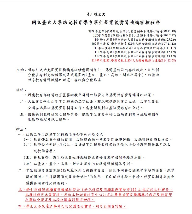 國立臺東大學幼兒教育學系學生畢業後實習機構審核程序1141208.pdf